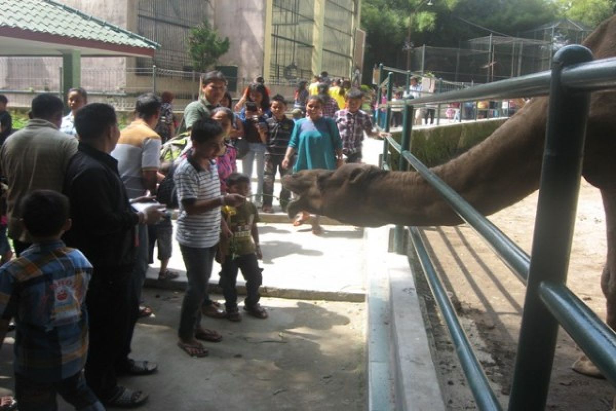 : Seorang remaja memberi makan pada seekor unta di Taman Hewan Pematang Siantar, Kamis (2/1). Taman hewan ini pada libur Tahun Baru 2014 dipadati pengunjung hingga mencapai 17.327 orang. (Foto Antarasumut/Waristo)