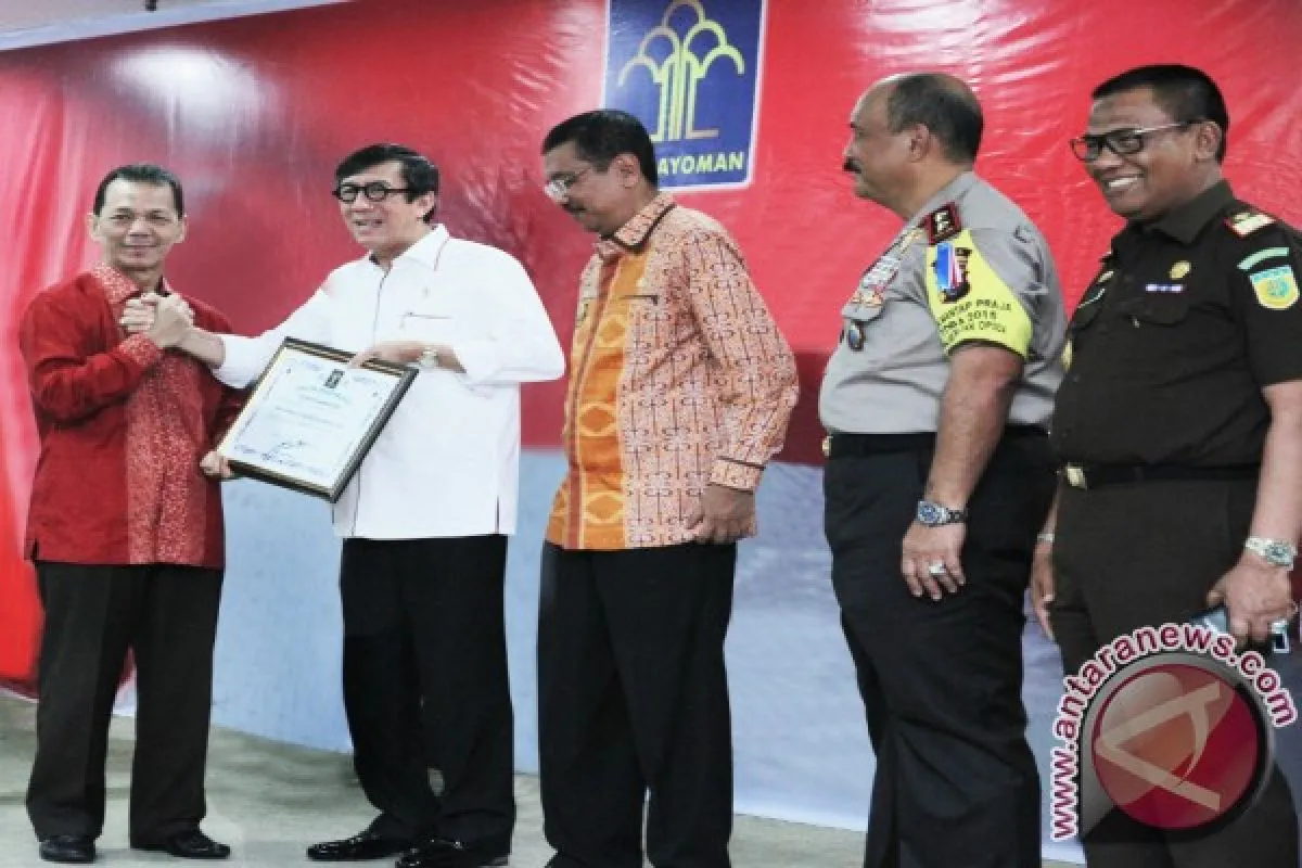 Penghargaan hanya diterima 10 dari 33 kepala daerah se Sumatera Utara (Sumut), dan diserahkan Menkum HAM di aula Martabe kantor Gubernur Sumut di Medan, Kamis (24/3).