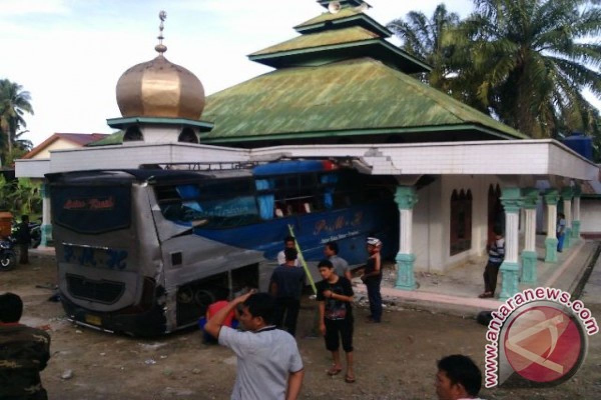 Labuhanbatu Selatan, 8/9 (Antarasumut) - Satu unit bus penumpang antar kota antar provinsi (AKAP) menabrak Masjid Nurul Yaqin di jalan lintas Sumatera kilometer 346-347 Desa Asam Jawa Kecamatan Torgamba Kabupaten Labuhanbatu Selatan, Kamis sekira pukul 04.15 WIB.