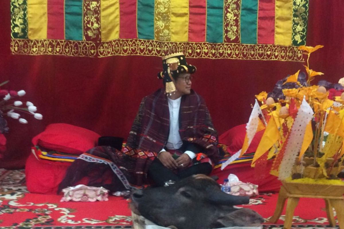 Cak Imin yang menggunakan jas hitam ini tampak santai ketika diberikan penghormatan dan penghargaan tertinggi adat dari Tapanuli Selatan itu setelah melalui keputusan sidang dari tetua adat Panusunan Bulung Gunung Tua Purba Sinombah Hololongan.