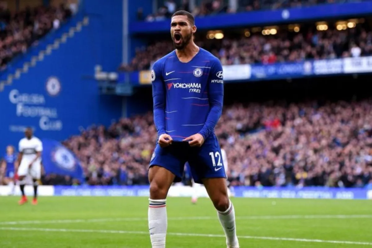 Gelandang Chelsea, Ruben Loftus-Cheek, merayakan golnya ke gawang Fulham dalam lanjutan Liga Inggris di Stadion Stamford Bridge, London, Inggris, Minggu (2/12/2018). (twitter.com/premierleague)