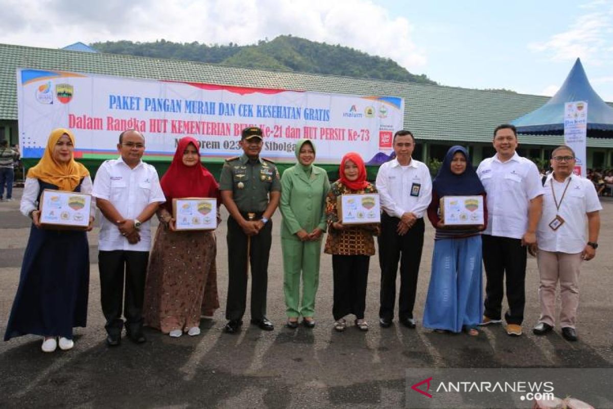 Medan (ANTARA) - PT Inalum (Persero) bekerjasama dengan Korem 022/PT dan Korem 023 KS menggelar berbagai bakti sosial berupa Pasar Murah dan Pengobatan Gratis bagi masyarakat sekitar Makorem 022/PT di Pematang Siantar dan Makorem 023/KSdi Sibolga.