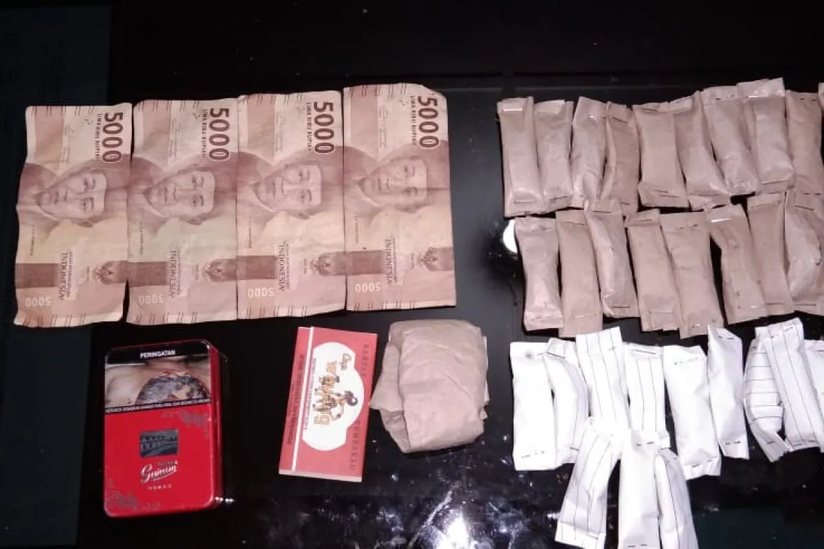 Juga satu bungkus narkotika daun ganja kering di dalam kotak rokok, satu kertas tiktak, dan uang Rp20.000 (dua puluh ribu rupiah).