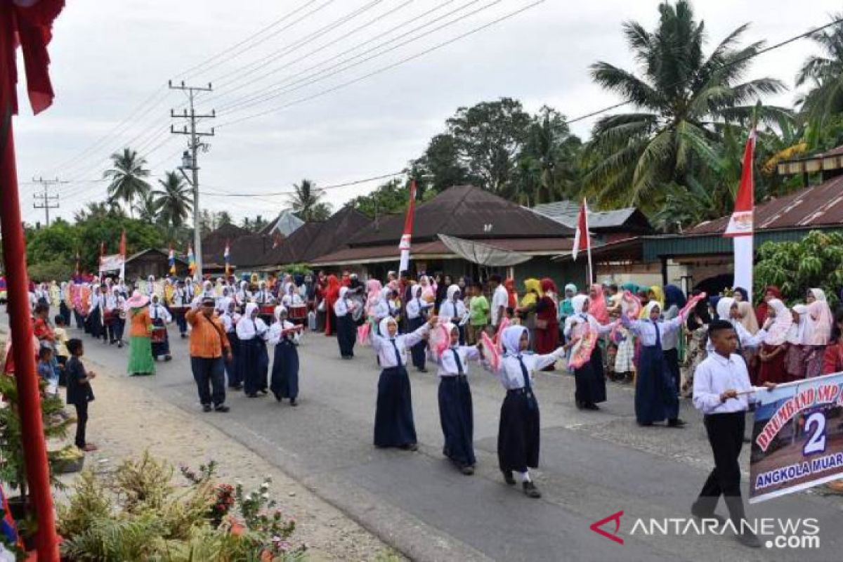 Tapanuli Selatan (ANTARA) - Pawai karnaval dalam rangka menyemarakkan HUT ke-74 Kemerdekaan RI dan HUT ke-1 Kecamatan Angkola Muara Tais, Kabupaten Tapanuli Selatan, Kamis, berlangsung meriah.