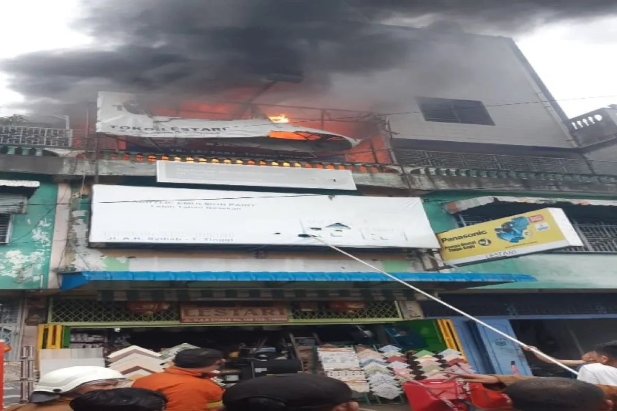 Tebing Tinggi (ANTARA) - Sebuah toko material bangunan berlantai 3 di Tebing Tinggi, Rabu, ludes terbakar. Api diduga akibat korslet mesin genset pemilik bangunan.