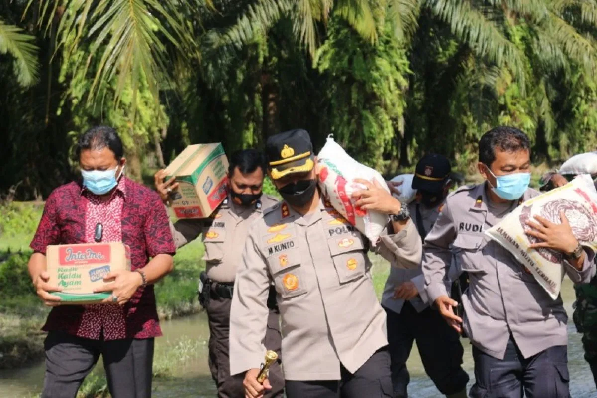 Tebing Tinggi (ANTARA) - Kapolres Tebing Tinggi AKBP M. Kunto Wibisono,didampingi, Kasat Intel Polres Tebing Tinggi AKP Syarifuddin dan pengurus Bhayangkari mengunjungi warga terdampak banjir di Desa Meriah Padang Kecamatan Tebing Tinggi Sergei.Jumat sore (12/11)