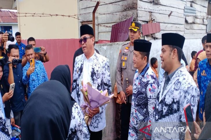 Madina (ANTARA) - Di peringatan Hari Guru Nasional Persatuan Guru Republik Indonesia (PGRI) ke-77 tahun 2022, Bupati Mandailing Natal HM Ja'far Sukhairi Nasution dan Ketua DPRD, Erwin Efendi Lubis memberikan kejutan dengan mengunjungi sekolah tempat mereka belajar sewaktu di SD, SMP dan SMA.