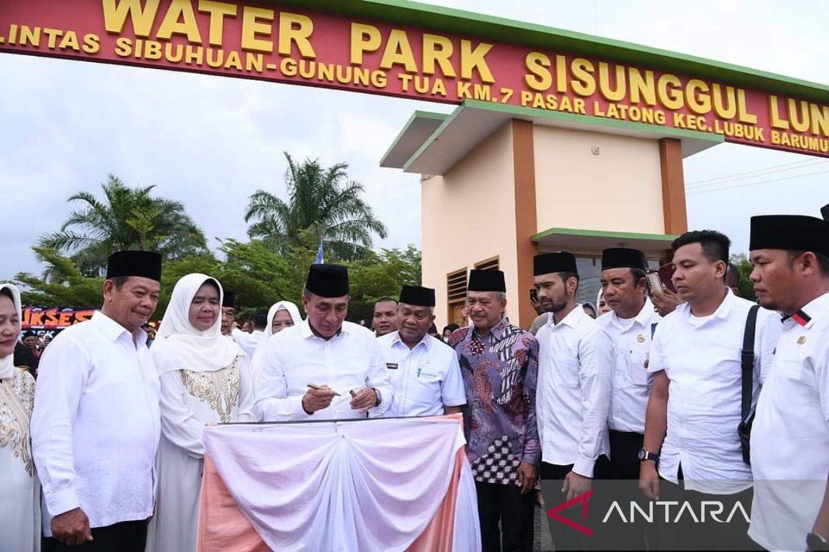 Padang Lawas (ANTARA) - Gubernur Sumatera Utara ( Gubsu) H. Edy Rahmayadi meresmikan lokasi tempat wisata Water Park Sisunggul Lungun, di sekitar Desa Batang Bulu Tanggal, jalan lintas Sibuhuan - Gunung Tua, KM ( Kilo Meter) 7, Pasar Latong, Kecamatan Lubuk Barumun, Kabupaten Padang Lawas ( Palas), Rabu (30/8) sore kemarin.