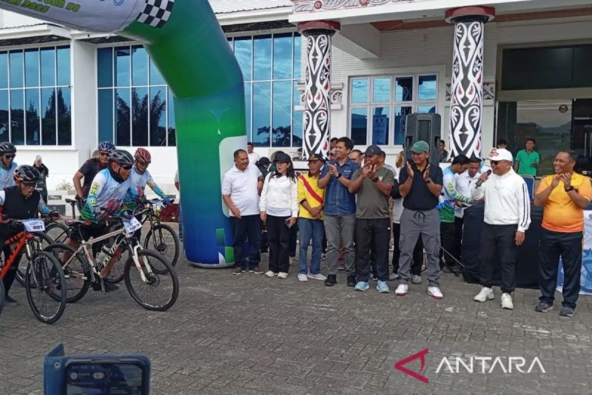Sebanyak 30 peserta dari komunitas sepeda bersepeda sepanjang 30 Km melintasi dua titik geosite Kaldera Toba dari Kantor Bupati Simalungun di Pematang Raya menuju Pantai Bebas Parapat.