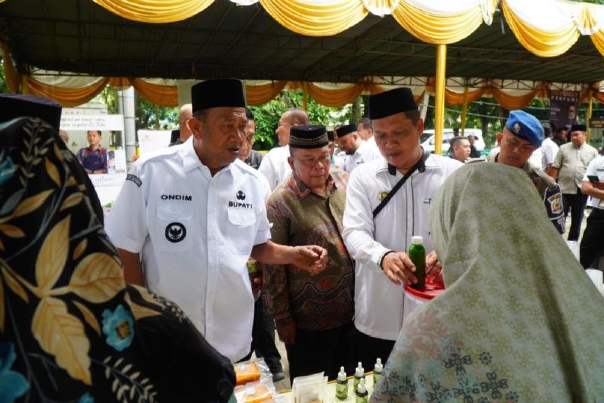 Langkat (ANTARA) - Bupati Langkat Syah Afandin secara resmi membuka event bazar produk UMKM Syariah dan lomba UMKM dalam rangka Gebyar MUMTAZ (Muharam UMKM Langkat Naik Kelas) yang diselenggarakan oleh Komisi Pemberdayaan Ekonomi Umat Majelis Ulama Indonesia (MUI) Kabupaten Langkat.