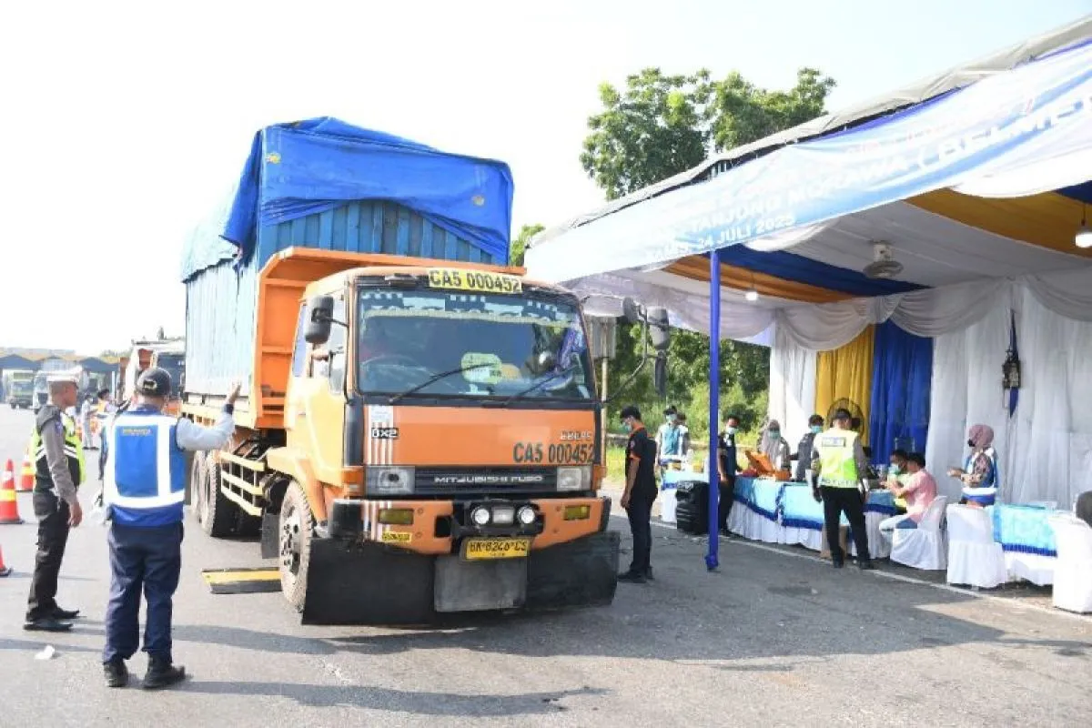 Medan (ANTARA) - PT Jasamarga Nusantara Tollroad (JNT) bersama pemangku kebijakan terkait menindak 30 kendaraan yang Over Dimension Over Loading (ODOL) di Tol Belawan-Medan-Tanjung Morawa (Belmera) atau tepatnya di Gerbang Tol Belawan.