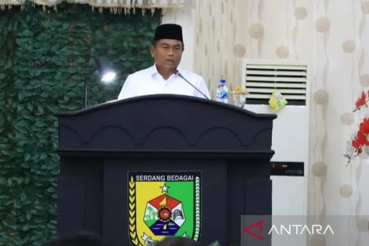 Bupati Serdang Bedagai, Darma Wijaya saat menyampaikan tanggapan terhadap pandangan umum fraksi-fraksi DPRD pada rapat paripurna terkait Nota Pengantar Ranperda tentang Perubahan Anggaran Pendapatan dan Belanja Daerah (P-APBD) Tahun Anggaran 2025. ANTARA/Juraidi