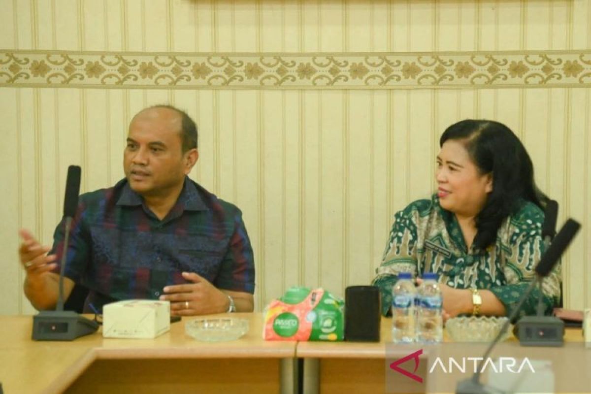 Wali Kota Padangsidimpuan Dr H Letnan Dalimunthe (kiri) bersama Kepala Seksi Penataan Ruang Dinas PUPR Provinsi Sumatera Utara, Ir. Tukkot Erika Friska di Kantor Dinas PUPR Provsu di Medan. ANTARA/Khairul Arief.