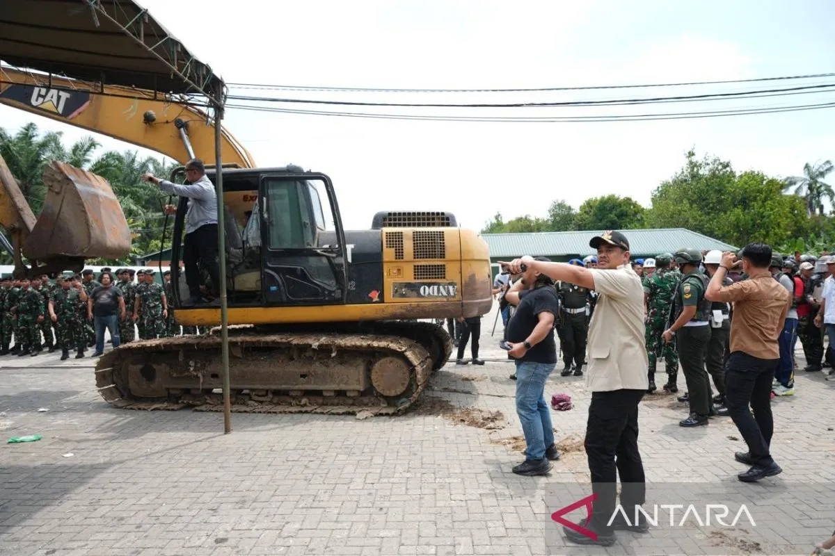 Gubernur Sumut Bobby Nasution bersama Kapoda Sumut Irjen Pol Whisnu Hermawan Februanto, Ketua DPRD Sumut Erni Ariyanti, Pangdam I/BB Mayjen TNI Rio Firdianto, Kajati Sumut Harli Siregar, memimpin pembongkaran THM gedung Diskotek Marcopolo di Jalan Seipetani, Kabupaten Deli Serdang, Sumatera Utara, Kamis (14/8).
