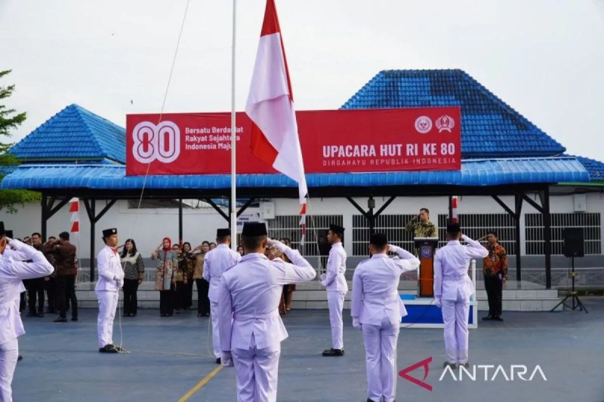 Medan (ANTARA) - Rumah Tahanan Negara (Rutan) Kelas I Medan, Kanwil Ditjenpas Sumatera Utara, menggelar upacara bendera memperingati HUT ke-80 Kemerdekaan Republik Indonesia, Minggu (17/8).