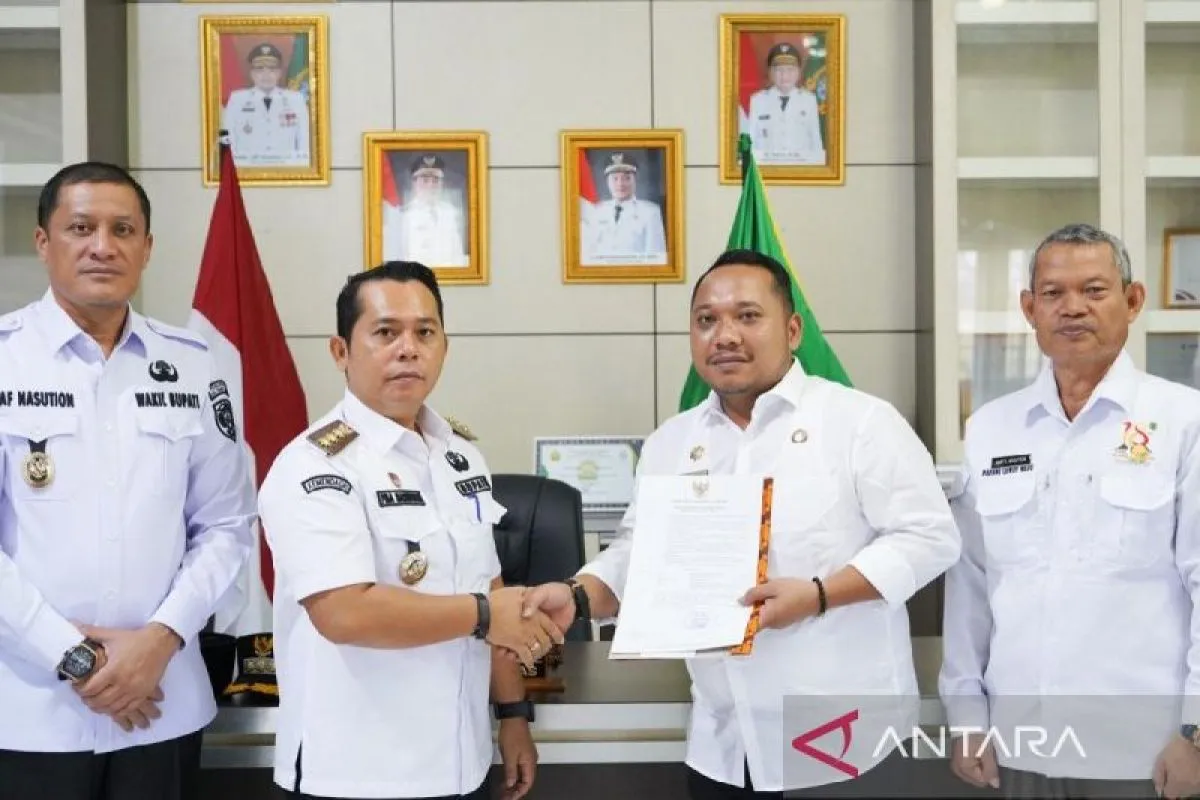 Padang Lawas (ANTARA) - Bupati Padang Lawas ( Palas) Putra Mahkota Alam Hasibuan menunjuk resmi Kepala Bidang Pembangunan Desa Dinas Pemberdayaan Masyarakat dan Desa Kabupaten Padang Lawas, Adi Sandra Siregar S. STP, MM menjadi pelaksana tugas ( Plt) Kepala Badan Penanggulangan Bencana Daerah Kabupaten Padang Lawas.