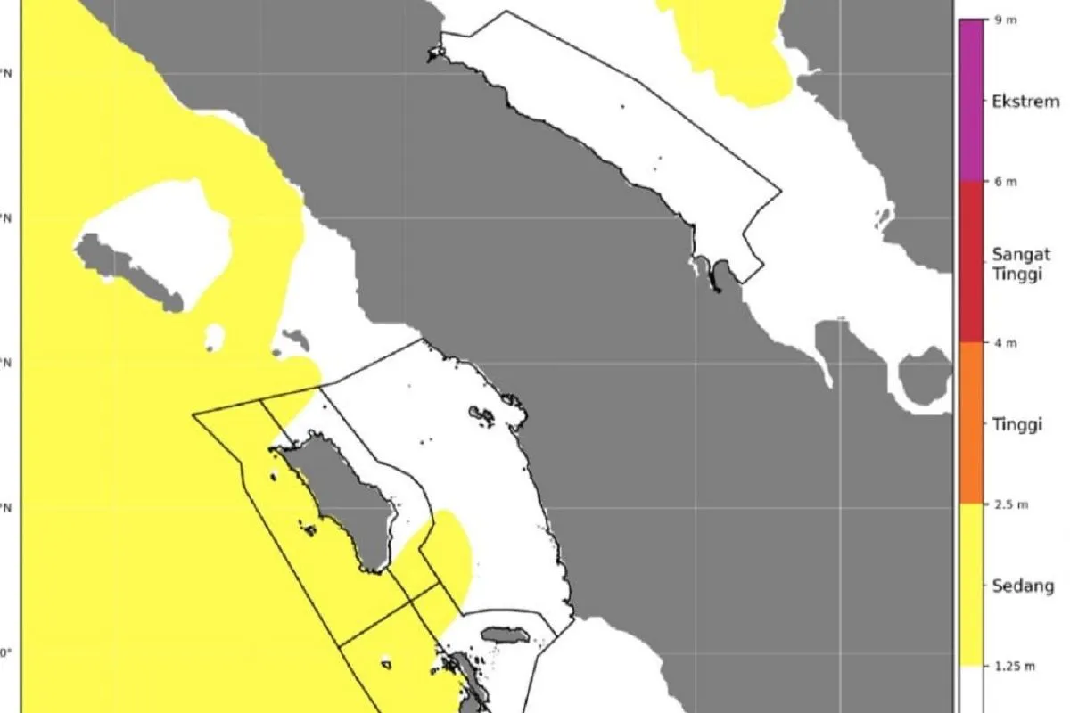 Prakirawan Stasiun Meteorologi Kelas II Maritim Belawan, Rizki Fadhillah Pratama Putra, mengatakan, gelombang setinggi 2,5 hingga 4 meter berpotensi terjadi di perairan barat Kepulauan Nias, Samudra Hindia barat Kepulauan Nias dan Perairan Kepulauan Batu.