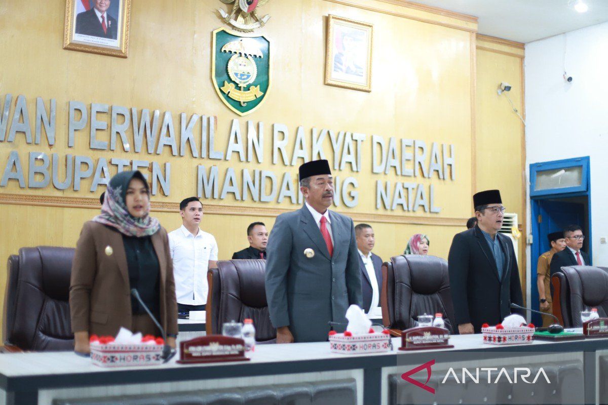 Madina (ANTARA) - Bupati Mandailing Natal (Madina), Saipullah Nasution menyampaikan nota pengantar untuk empat Rancangan Peraturan Daerah (Ranperda) pada rapat paripurna Dewan Perwakilan Rakyat Daerah (DPRD) Senin (15/9).