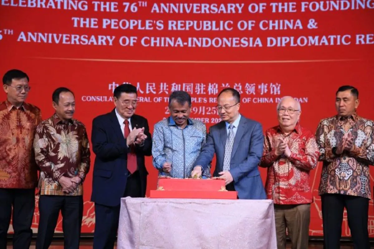 Medan (ANTARA) - Konsul Jenderal (Konjen) Republik Rakyat Tiongkok (RRT) di Medan merayakan peringatan 76 tahun berdirinya Republik Rakyat Tiongkok dan peringatan 75 tahun terjalinnya hubungan diplomatik Tiongkok-Indonesia.