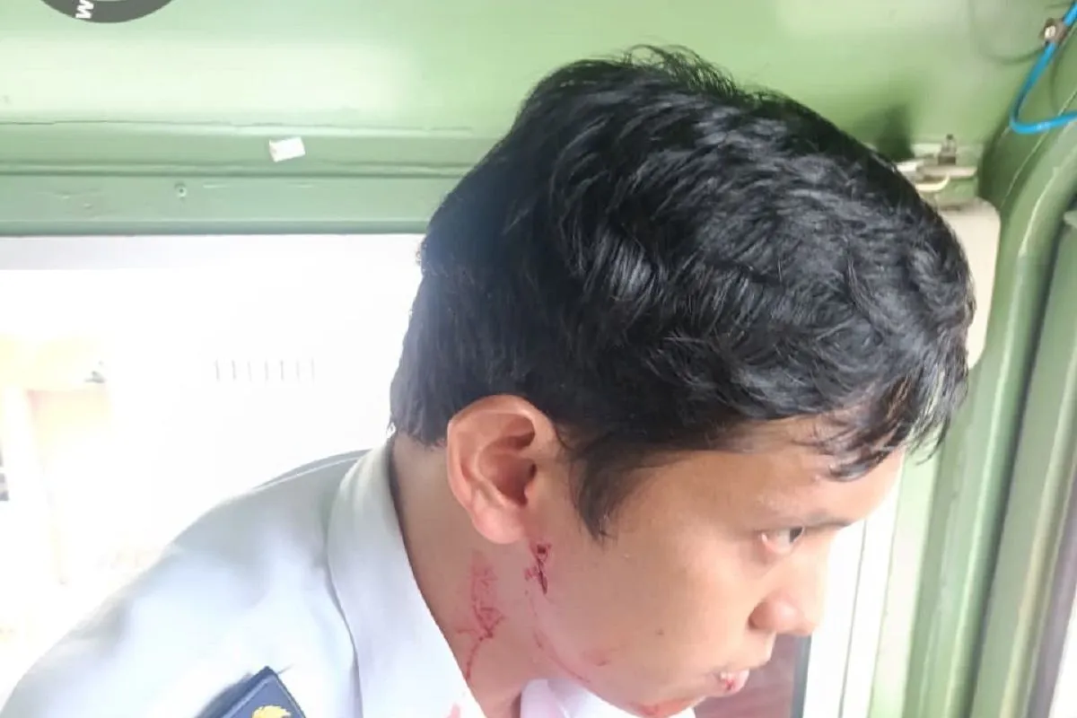 Akibat insiden tersebut, kaca kabin lokomotif pecah dan asisten masinis bernama Rizky Ananda mengalami luka pada bagian wajah.