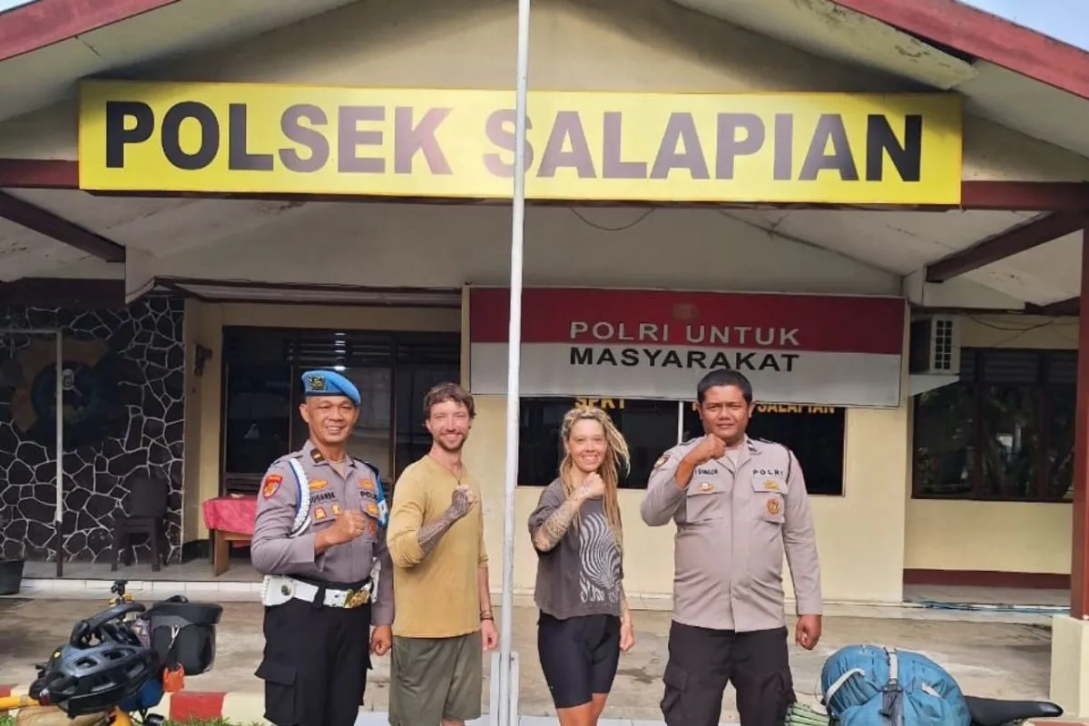 "Kedua turis ini juga mengucapkan terima kaaih, sebelum melanjutkan perjalanan dari Polsek Salapian, setelah sebelumnya mereka menginap dan beristirahat," katanya.