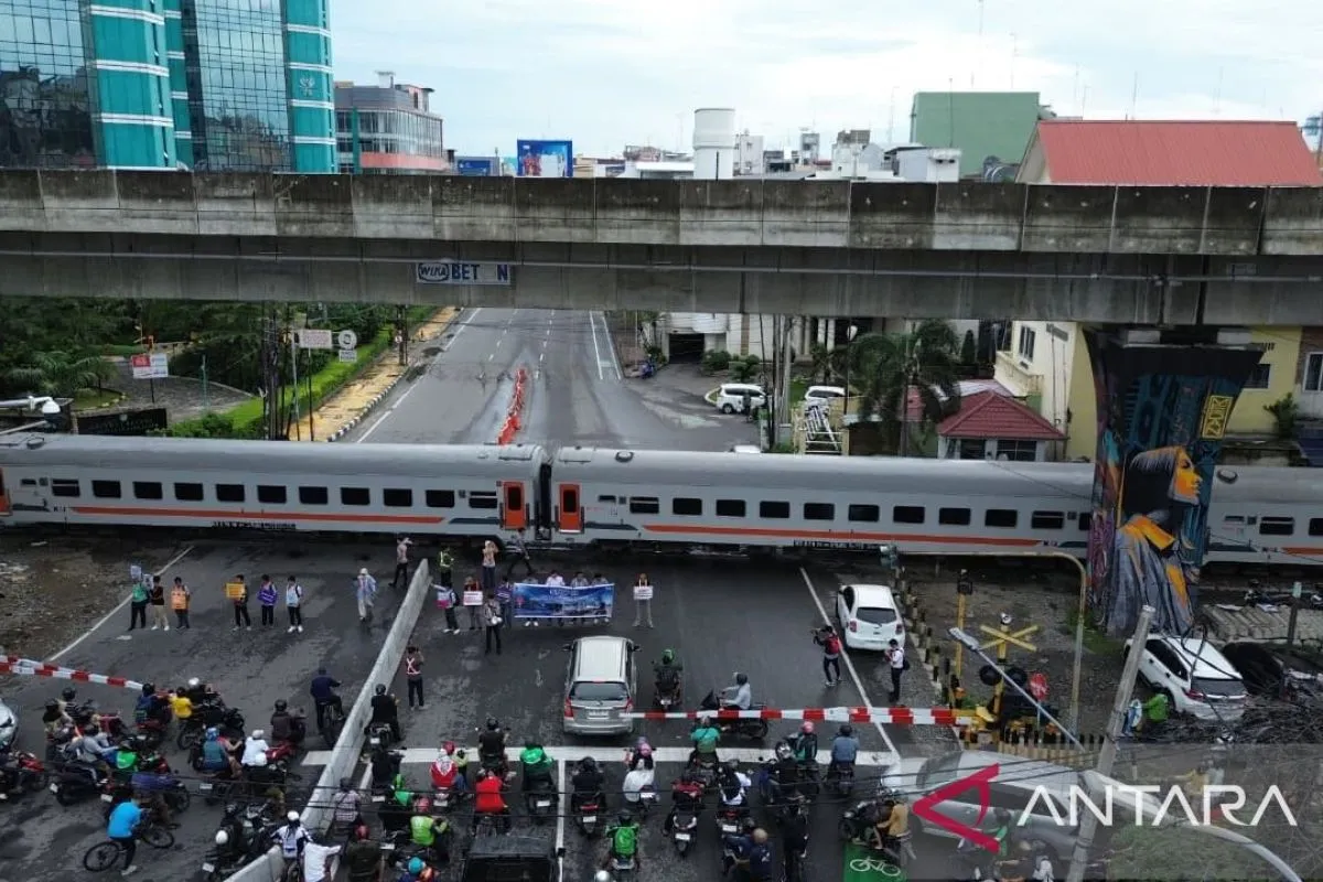 Medan (ANTARA) - PT Kereta Api Indonesia (Persero) Divre I Sumatera Utara bersama Komunitas Divre 1 Railfans menggelar kegiatan sosialisasi keselamatan di perlintasan sebidang dan sosialisasi anti-pelecehan seksual, dalam upaya meningkatkan keselamatan perjalanan kereta api sekaligus menciptakan lingkungan transportasi yang aman dan nyaman.