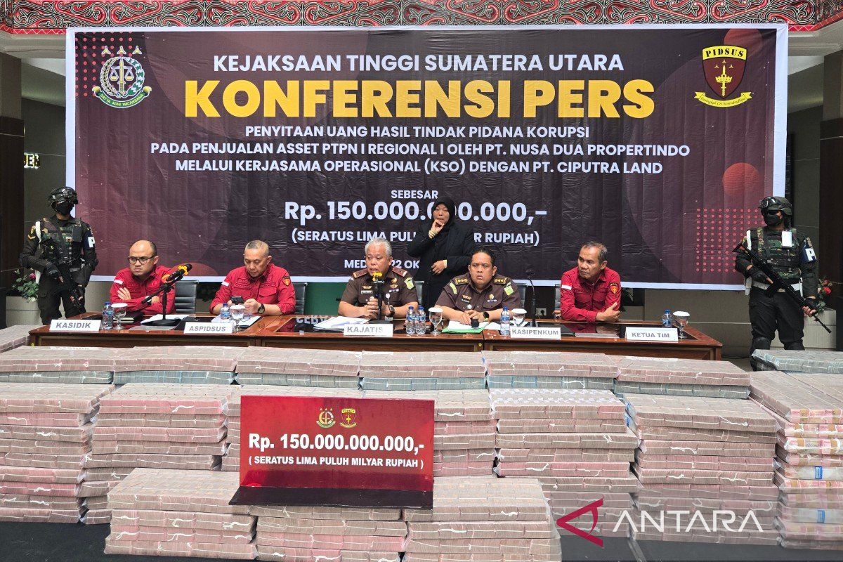 Sebelumnya, Kejati Sumut telah menyita uang senilai Rp150 miliar dari dugaan korupsi penjualan aset PTPN I Regional I oleh PT Nusa Dua Propertindo melalui kerja sama operasional (KSO) dengan PT Ciputra Land.