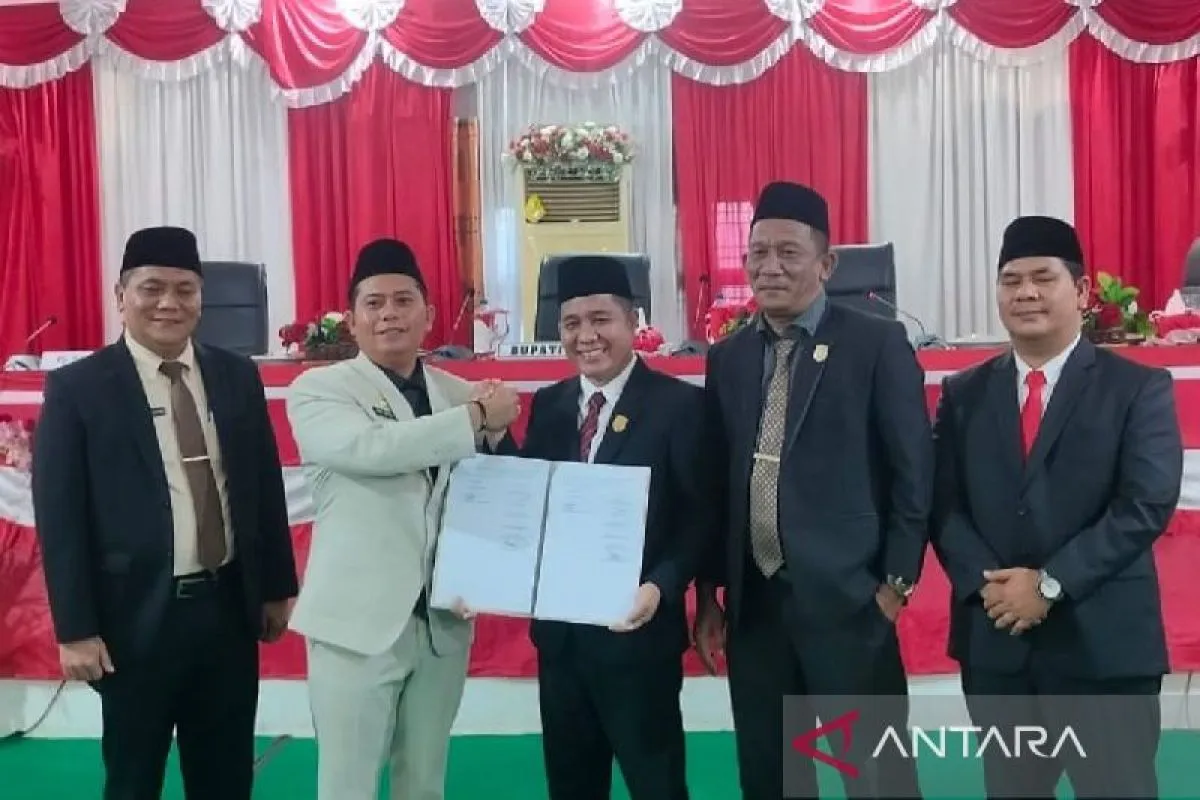 Padang Lawas (ANTARA) - Dewan Perwakilan Rakyat Daerah ( DPRD) Kabupaten Padang Lawas ( Palas) melaksanakan kegiatan rapat paripurna penetapan (pengesahan) rancangan peraturan daerah ( Ranperda) tentang anggaran pendapatan dan belanja daerah ( APBD) Kabupaten Padang Lawas tahun anggaran ( TA) 2026, di ruang rapat paripurna gedung kantor DPRD Palas, Sibuhuan, Kecamatan Barumun, Minggu (29/11) sore kemarin.