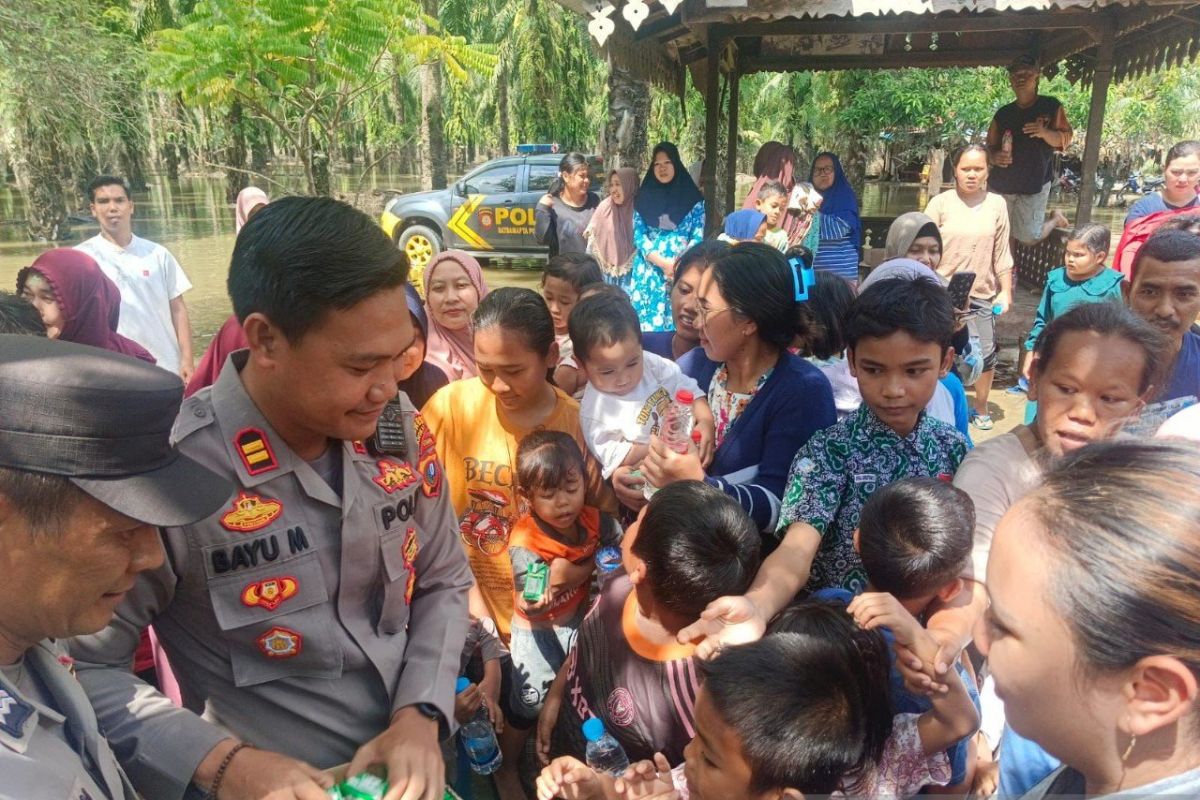Kapolres Langkat AKBP David Tryo Prasojo melalui Kapolsek Padang Tualang Iptu Bayu Mahardhika menyampaikan komitmennya dalam membantu warga yang terdampak banjir.