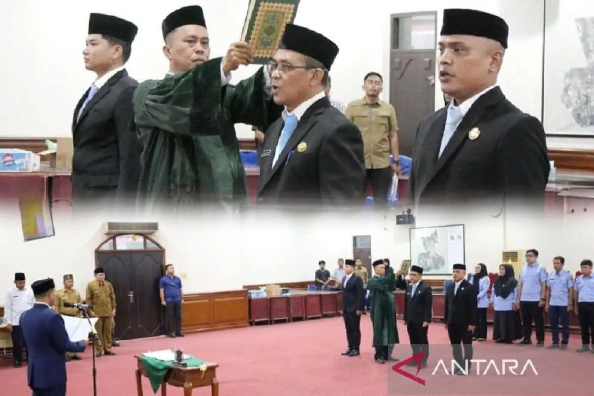 Tanjung Balai (ANTARA) - Wali Kota Tanjungbalai, Mahyaruddin Salim melantik Putra Mangaratua Siahaan dan Agus Salim Lubis sebagai direktur utama dan Dewan Pengawas Perusahaan Daerah Air Minum (PDAM) Tirta Kualo Kota Tanjungbalai di Balai Kota setempat, Selasa (16/12/2025).