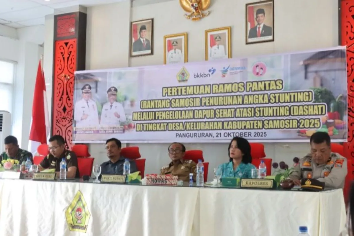 Samosir (ANTARA) - Pemerintah Kabupaten Samosir memperkuat upaya penurunan angka stunting melalui program inovatif Ramos Pantas (Rantang Samosir Penurunan Angka Stunting) dengan pengelolaan Dapur Sehat Atasi Stunting (Dashat) di tingkat desa dan kelurahan tahun 2025. Tahun ini, program Ramos Pantas dilaksanakan di 20 desa/kelurahan yang tersebar di 9 kecamatan.