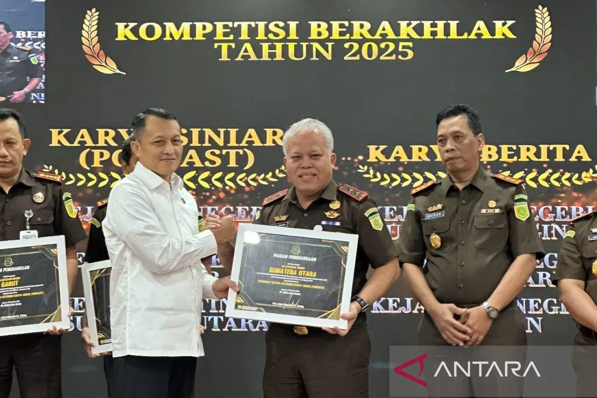 Medan (ANTARA) - Kejaksaan Tinggi Sumatera Utara (Kejati Sumut) meraih penghargaan sebagai peringkat ketiga satuan kerja (Satker) dalam kompetisi BerAKHLAK Tahun 2025 yang diselenggarakan oleh Kejaksaan Agung (Kejagung) Republik Indonesia.