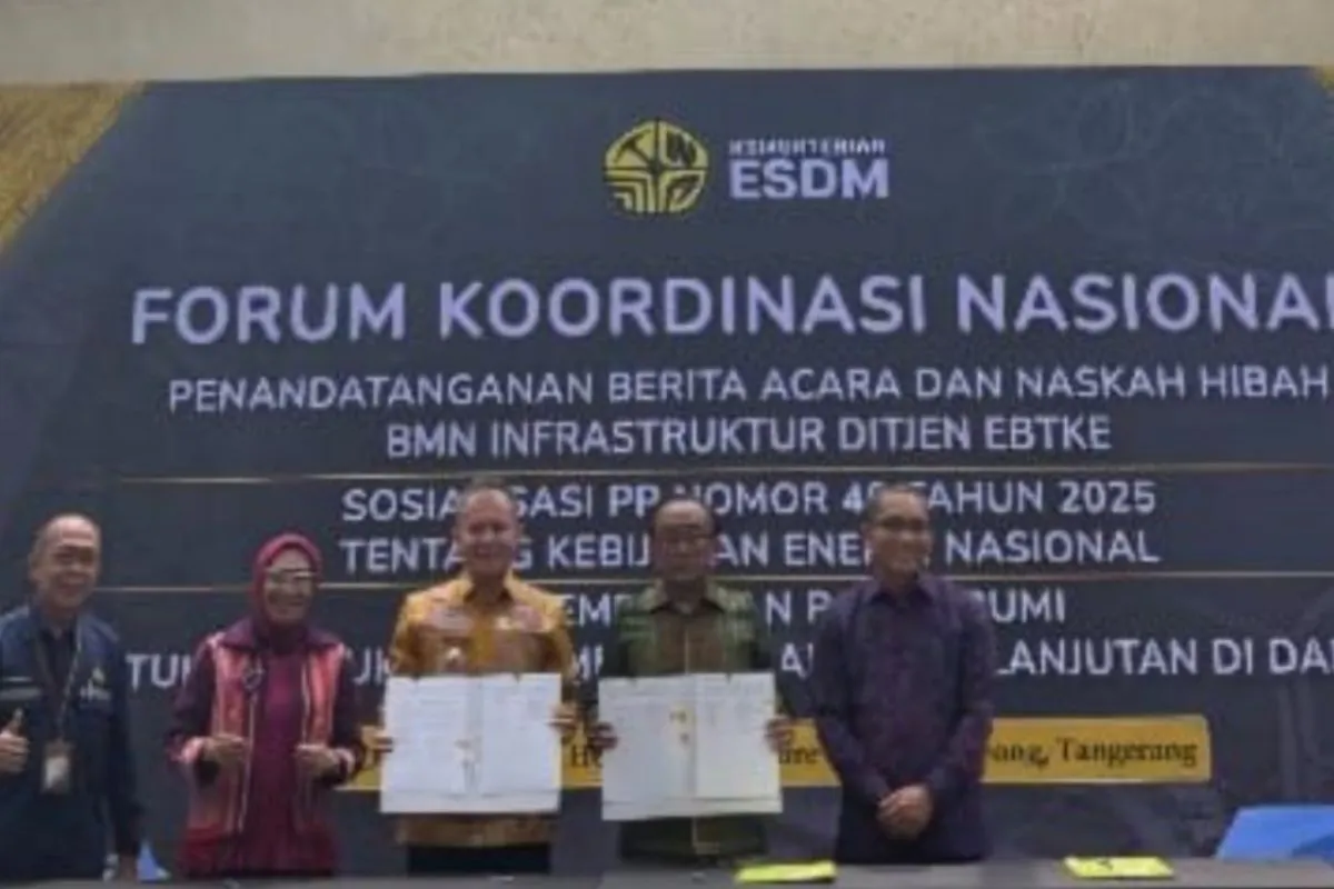 Samosir (ANTARA) - Wakil Bupati Samosir Ariston Tua Sidauruk didampingi oleh Kepala Dinas Perhubungan Samosir, Laspayer Sipayung melakukan Penandatanganan Berita Acara Serah Terima (BAST) dan Naskah Hibah Barang Milik Negara (BMN) Direktorat Jenderal Energi Baru, Terbarukan dan Konservasi Energi (EBTKE) Kementerian ESDM kepada pemerintah daerah, yang dilaksanakan di JHL Solitaire Gading Serpong, Tangerang Banten, Rabu (3/12/2025).