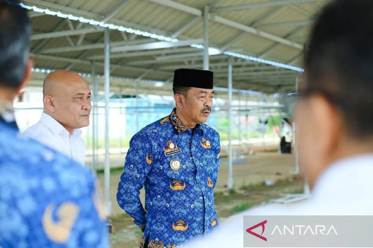 Madina (ANTARA) - Bupati Mandailing Natal (Madina), Saipullah Nasution meninjau progres pembangunan los di kawasan Pasar Baru Panyabungan, Rabu (17/12)