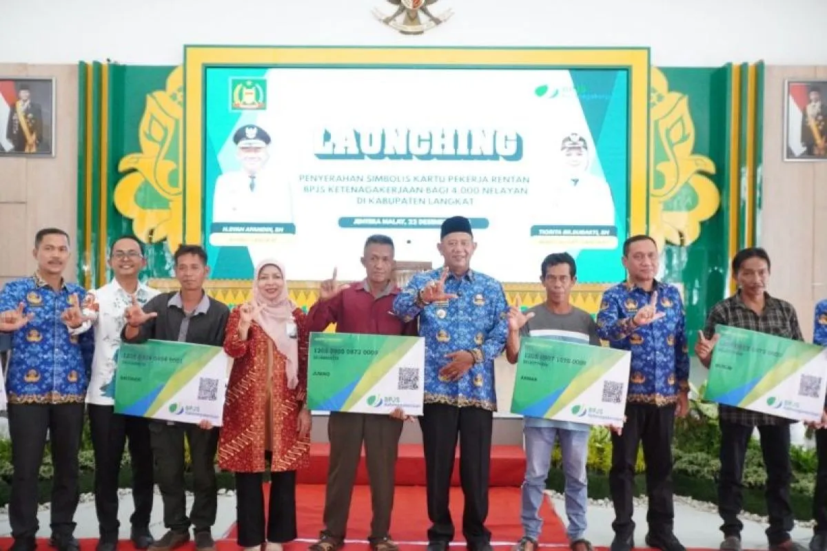 Langkat (ANTARA) - Bupati Langkat Syah Afandin menyerahkan Kartu Pekerja Rentan BPJS Ketenagakerjaan kepada 4.000 nelayan di Kabupaten Langkat. Penyerahan tersebut, sebagai bentuk komitmen pemerintah daerah dalam memberikan perlindungan sosial bagi pekerja sektor rentan.