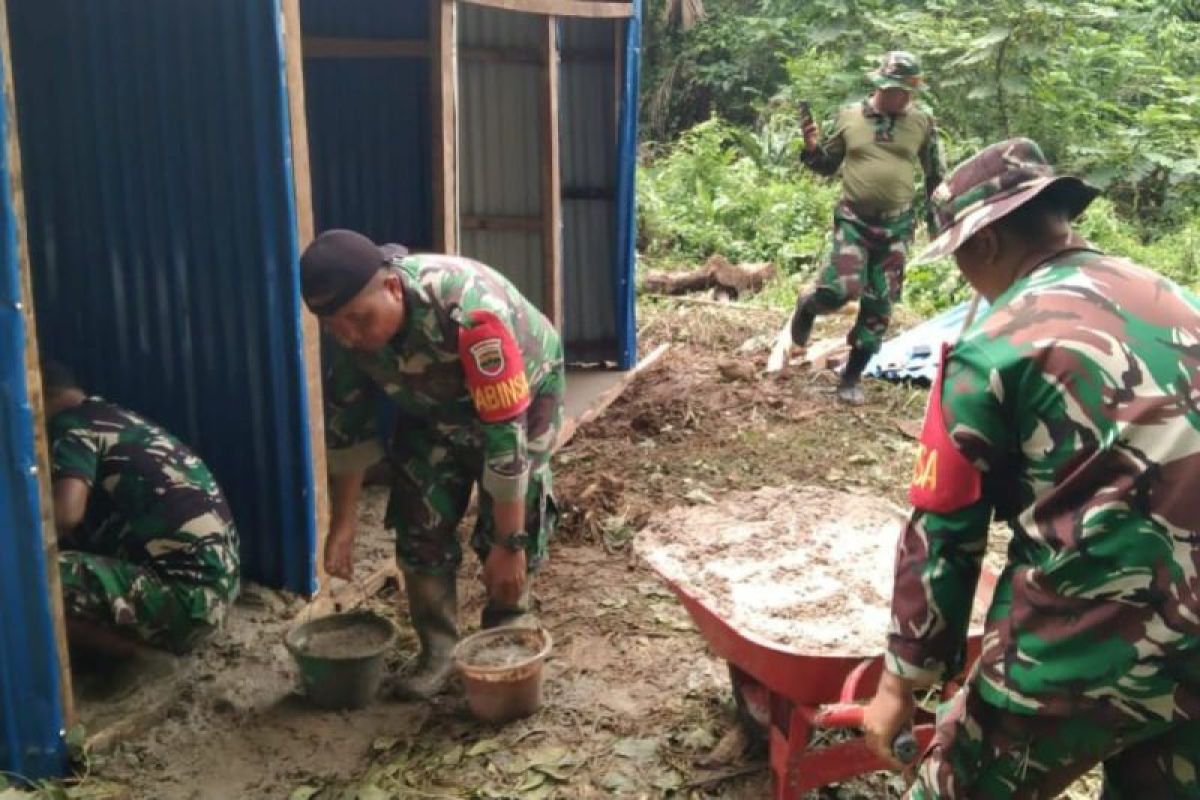 Medan (ANTARA) - Satuan Tugas Penanggulangan Bencana Alam Kodam I/Bukit Barisan menyiapkan fasilitas mandi cuci kakus (MCK) guna memenuhi kebutuhan sanitasi para pengungsi di lokasi HKBP Dusun I Pagaran Pinasa, Kabupaten Tapanuli Tengah (Tapteng), Sumatera Utara