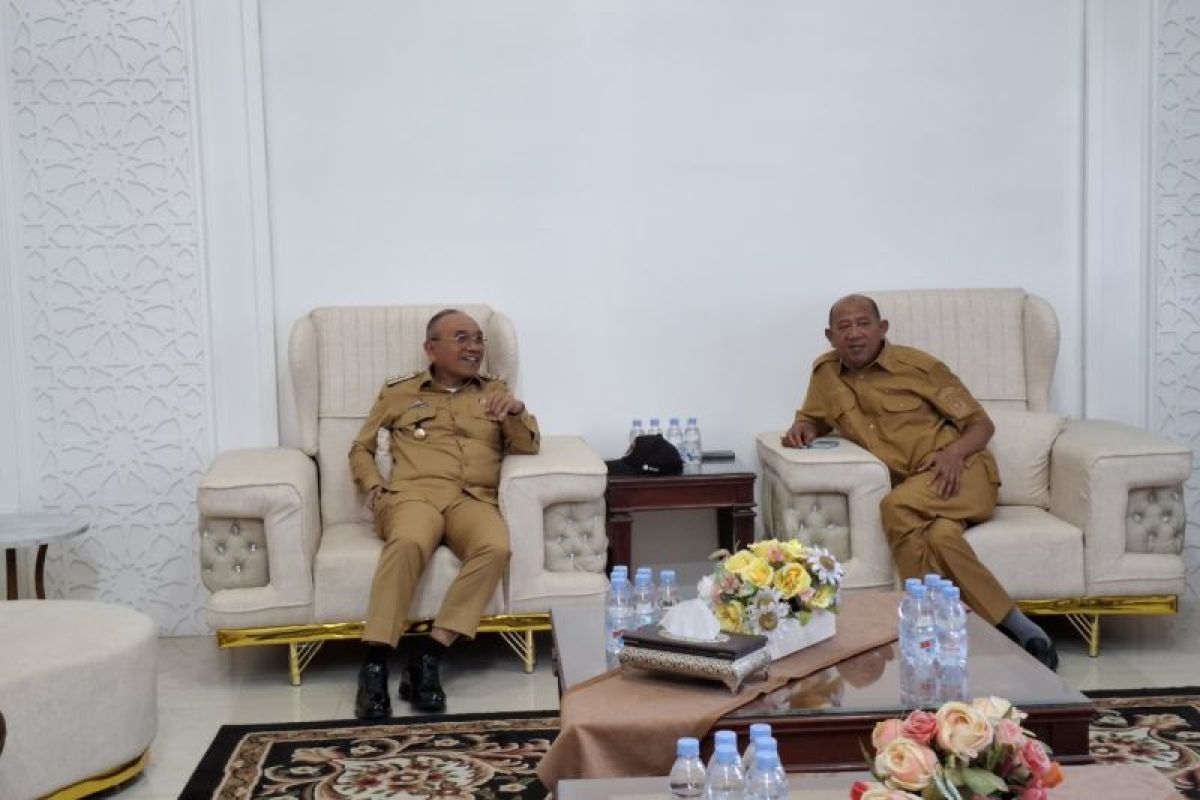 Langkat (ANTARA) - Bupati Langkat Syah Afandin bersama Ketua Tim Pnbggerak PKK Langkat Ny.Hj. Endang Kurniasih Syah Afandin menerima kunjungan Bupati Simalungun Dr. H. Anton Achmad Saragih,.M., dan Ketua TP.PKK Simalungun Ny.Darmawati Anton Achmad Saragih, bertempat di rumah dinas Bupati Langkat, dalam rangka menyerahkan bantuan, Selasa.