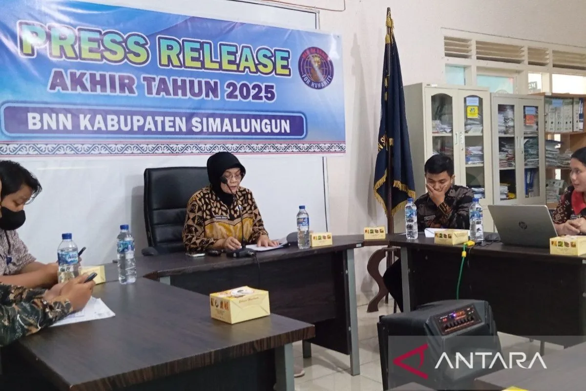 Simalungun (ANTARA) - Badan Narkotika Nasional (BNN) Kabupaten Simalungun paparan capaian kinerja sepanjang tahun 2025, Selasa (23/12), di kantor sekretariat di Pematang Raya.