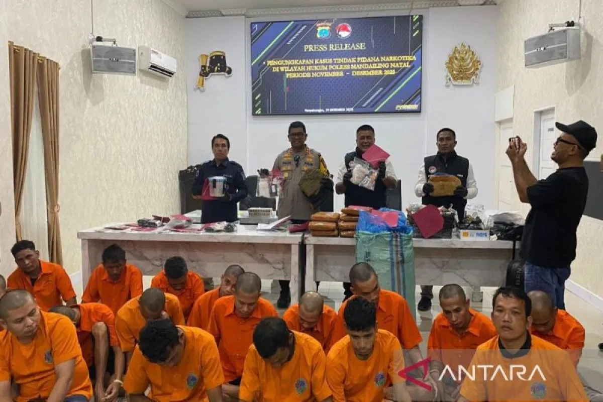 Madina (ANTARA) - Kepolisian Resor Mandailing Natal (Polres Madina) merilis capaian pengungkapan tindak pidana narkotika sepanjang November hingga Desember 2025. Dalam kurun dua bulan tersebut, Satresnarkoba Polres Madina bersama jajaran polsek berhasil mengungkap 18 kasus dengan 20 orang tersangka berbagai peran, mulai dari penjual, pengedar hingga kurir.