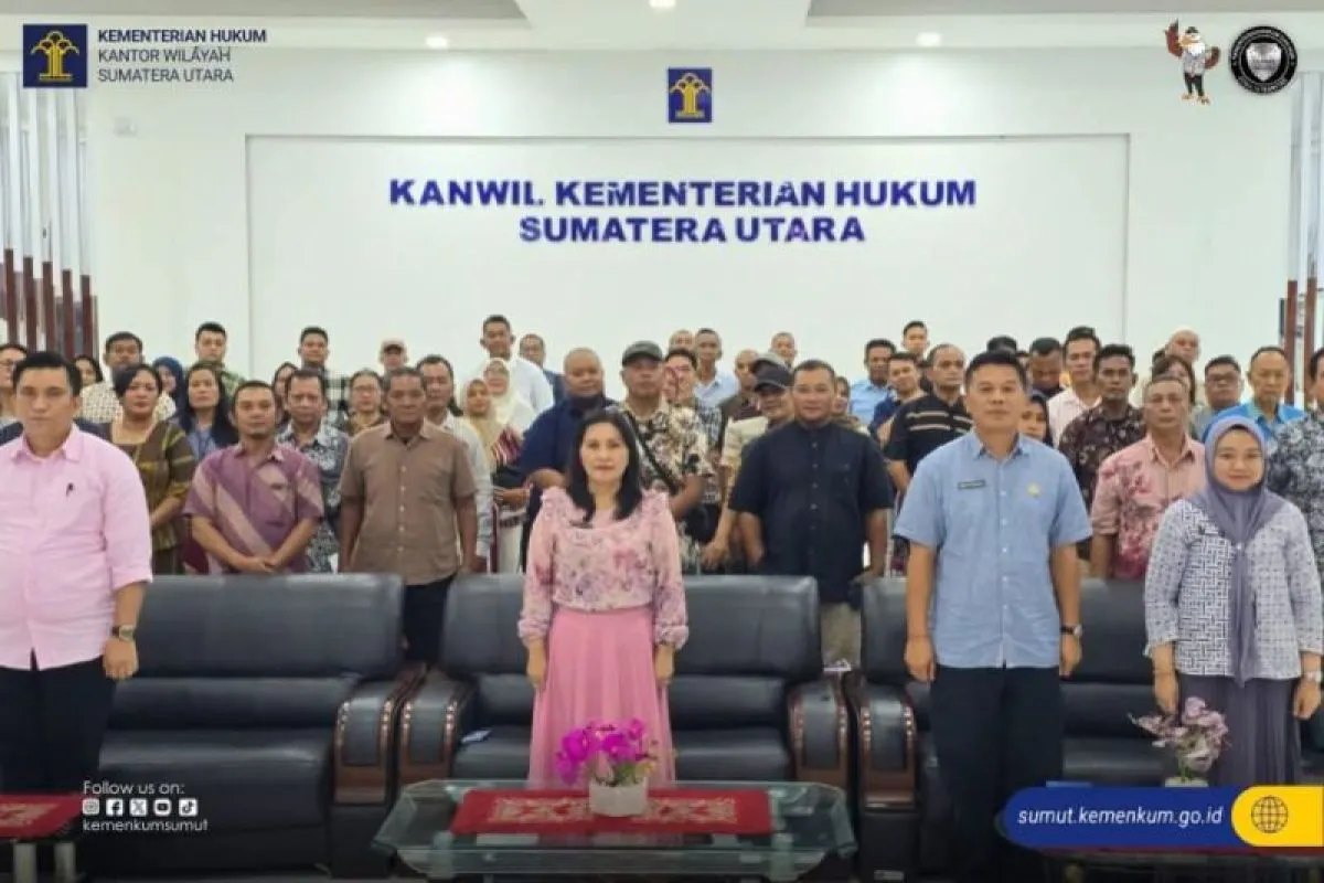 Kanwil Kemenkum Sumut menggelar Kegiatan Edukasi Kekayaan Intelektual dengan Tema Pemberdayaan Inovasi dan Merek Kolektif dalam Membangun Kemandirian Ekonomi Koperasi Merah Putih. Kegiatan yang berlangsung di Aula Soepomo ini dibuka secara resmi oleh Kepala Divisi Pelayanan Hukum, didampingi Kepala Divisi Peraturan Perundang-undangan dan Pembinaan Hukum.