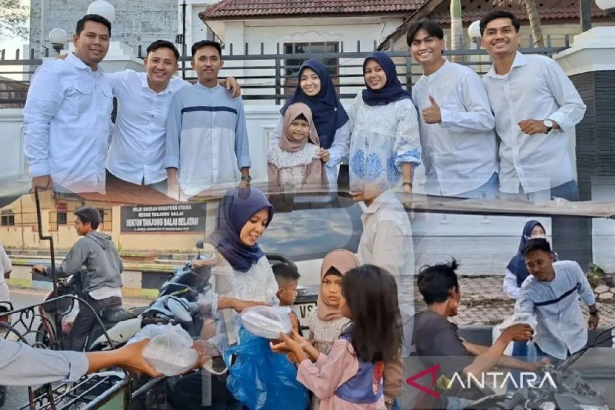 Tanjung Balai (ANTARA) - Tujuh orang pemuda/i yang tergabung dalam kelompok Peduli Tanjungbalai melaksanakan kegiatan berbagi panganan berbuka puasa kepada warga yang melintas di Jalan Sudirman daerah setempat, Minggu (16/3/2026) sore.