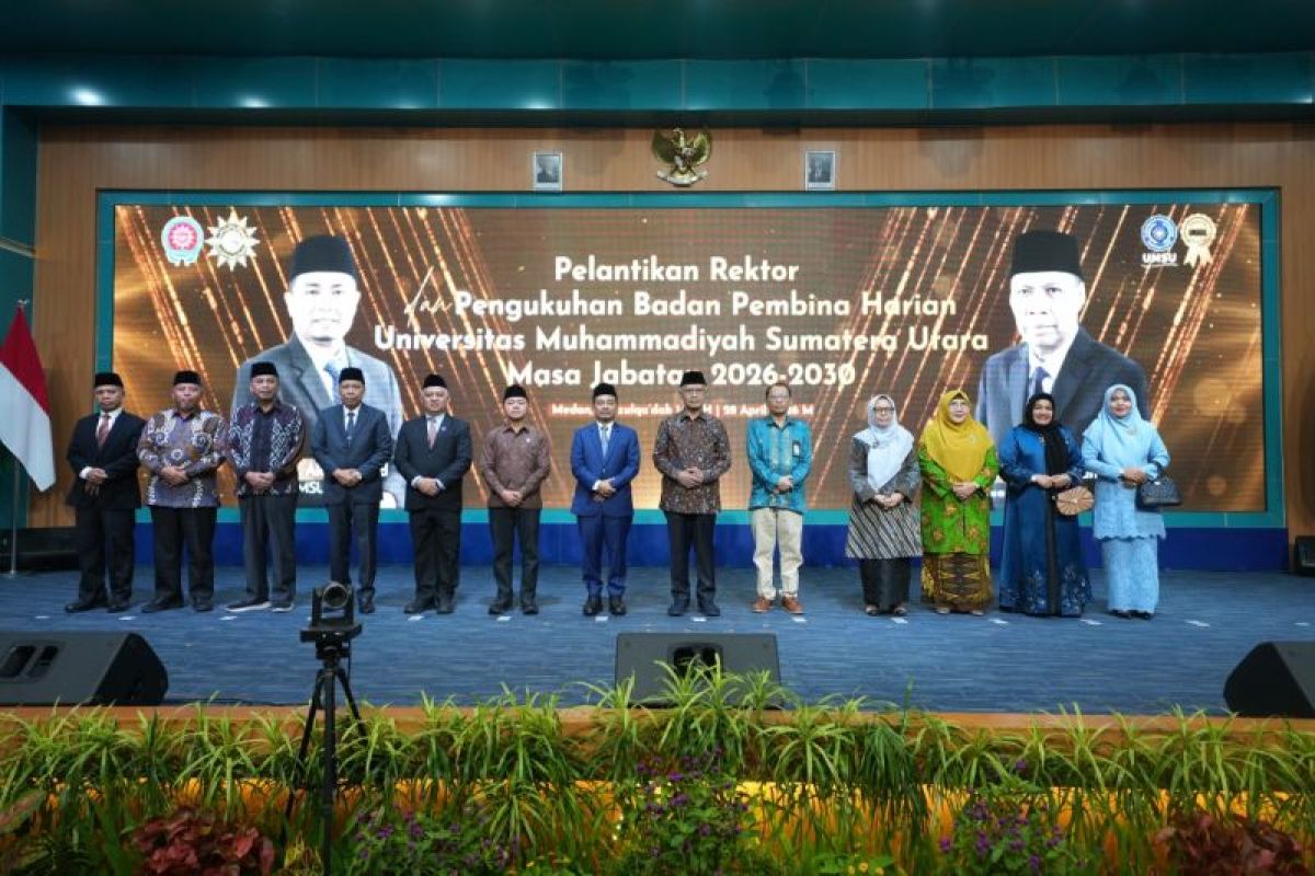 Medan (ANTARA) - Pimpinan Pusat (PP) Muhammadiyah resmi melantik Prof. Dr. Akrim, M.Pd sebagai Rektor dan mengukuhkan Prof. Dr. Agussani, MAP sebagai Ketua Badan Pembina Harian (BPH) Universitas Muhammadiyah Sumatera Utara (UMSU) periode 2026-2030. Acara digelar di Auditorium Kampus Jalan Muchtar Basri No.3 Medan, Rabu (28/4).